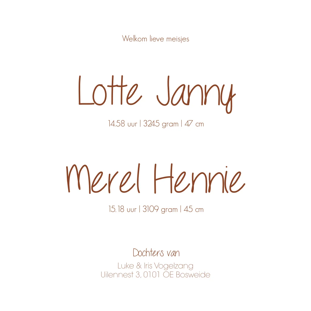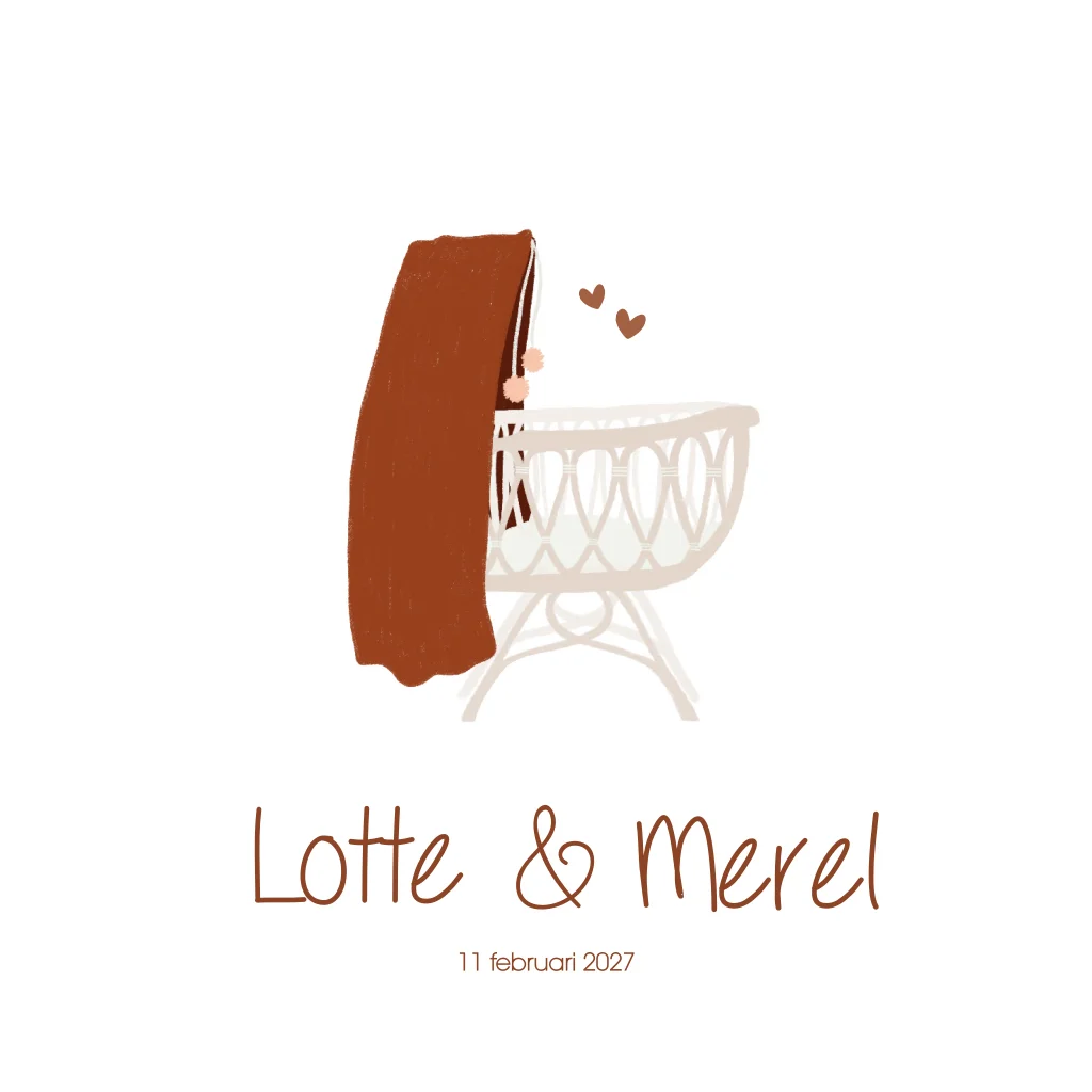 Geboortekaartje met een lief waterverf wiegje. Geboortekaartje Lotte & Merel is ontzettend mooi als je het op gebobbeld papier laat drukken.