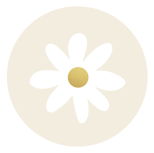 Sticker madelief op gewolkte beige achtergrond.