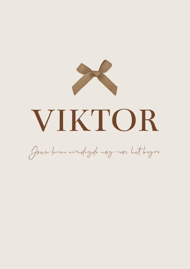 Een klassiek en tijdloze rouwkaart Viktor in neutrale en bruine kleuren. Het strikje maakt het wat chique. Je kunt alles gemakkelijk naar je wensen aanpassen, ook de kleur van het strikje.