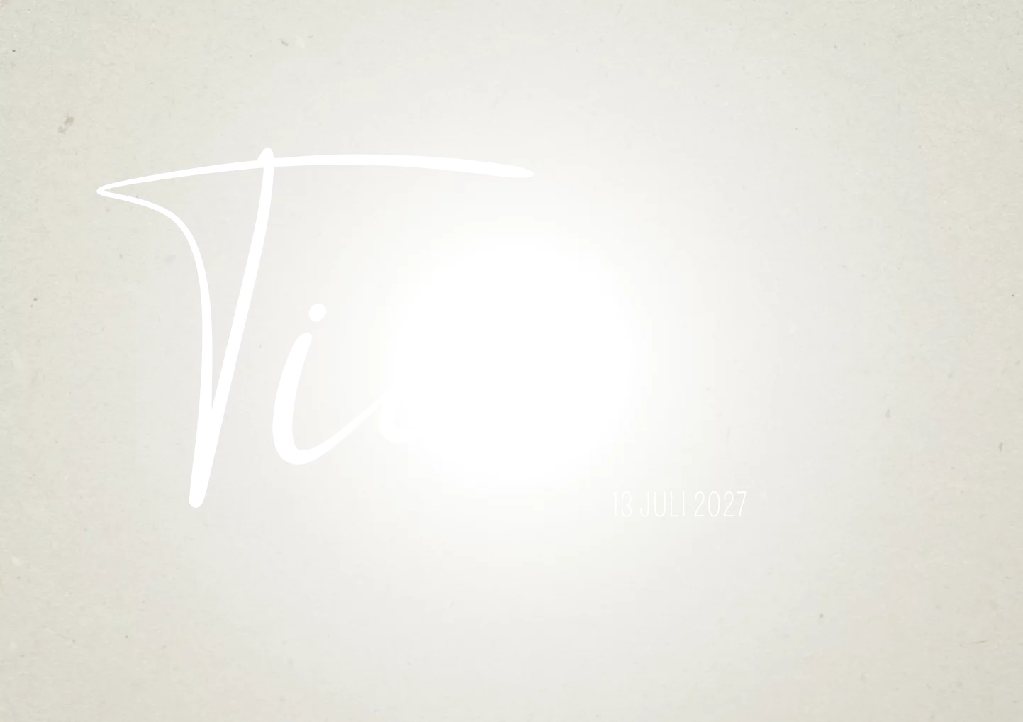 Prachtige eenvoudige crème/ beige kaart met lichtinval in het midden. De sierlijke letters kunnen in koperfolie gedrukt worden.
