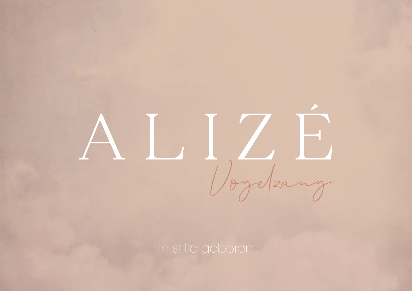 Lief en zacht kaartje in zalm roze/ peach kleur met wolk effect als achtergrond. De chique letters zijn erg mooi in goudfolie. De achternaam heeft sierlijke letters.