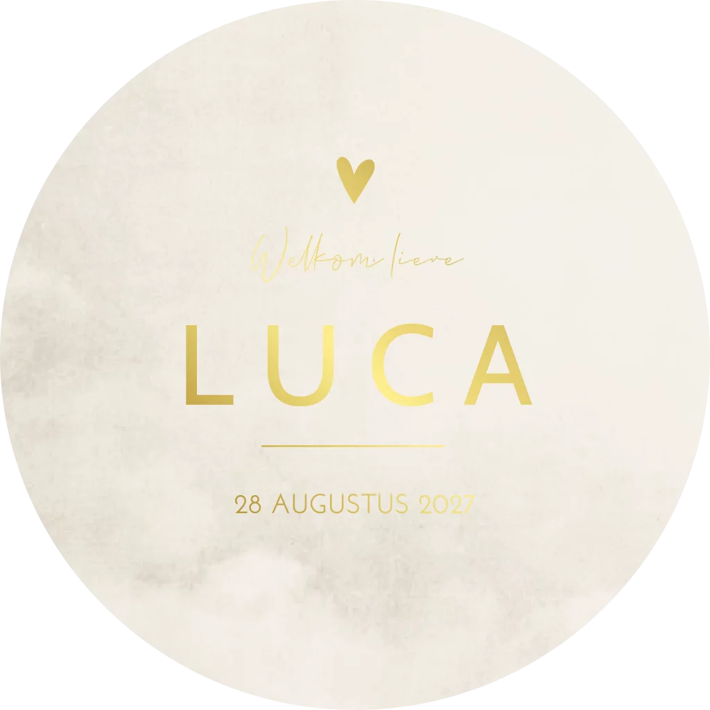 Een gewolkt beige geboortekaartje in een ronde vorm. Kaartje Luca is een strak en modern kaartje zonder teveel poespas. Less is more!
