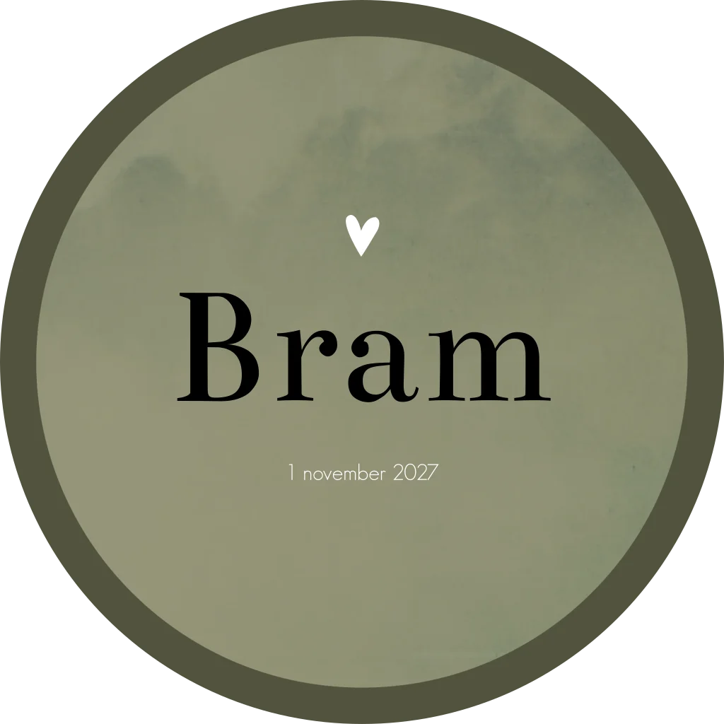 Een klassiek en stoer rond geboortekaartje. Kaartje Bram is een groen gewolkt kaartje met een donkergroene rand. Door het gebruik van het klassieke lettertype is het een tijdloos ontwerp.