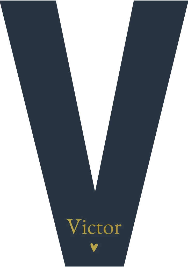 Een bijzonder geboortekaartje. Kaartje Victor is namelijk een kaartje in de letter 'V'. Daarnaast heeft het kaartje een donkerblauwe achtergrond in combinatie met goudfolie. Een combinatie wat zorgt voor een chique en stoere uitstraling. Wil je liever een andere vorm letter? Neem dan contact met ons op voor alle mogelijkheden.