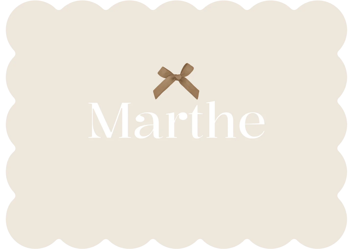 Dit geboortekaartje Marthe heeft een neutrale beige kleur met een bruin strikje, maar de cookie / koekjes vorm maakt het kaartje uniek!