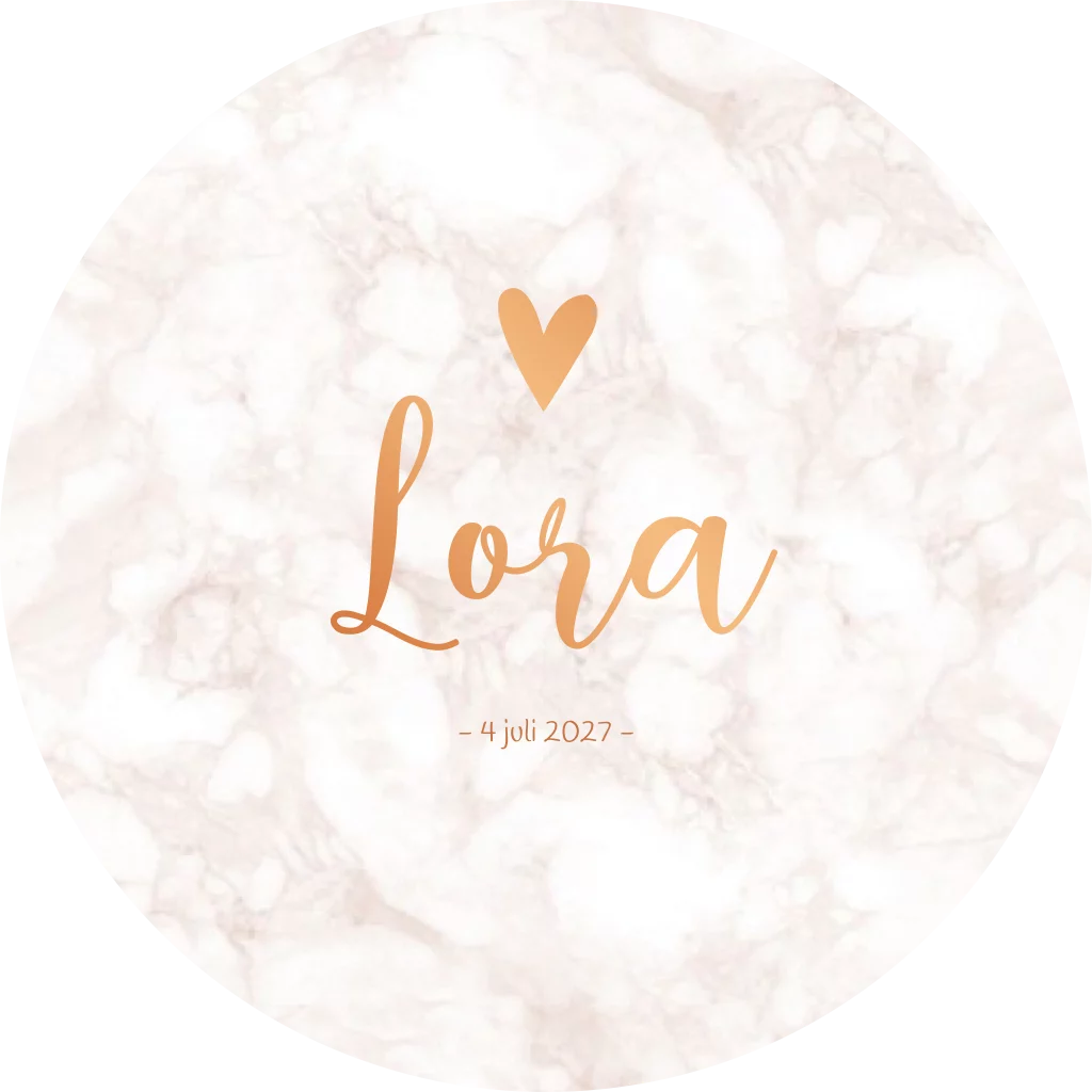 Een lichtroze marmeren kaartje in een ronde vorm. Kaartje Lora is afgewerkt met koperfolie zodat het kaartje nog chiquer oogt. Wil je graag iets aanpassen aan het kaartje? Neem dan een kijkje in onze editor voor alle mogelijkheden.