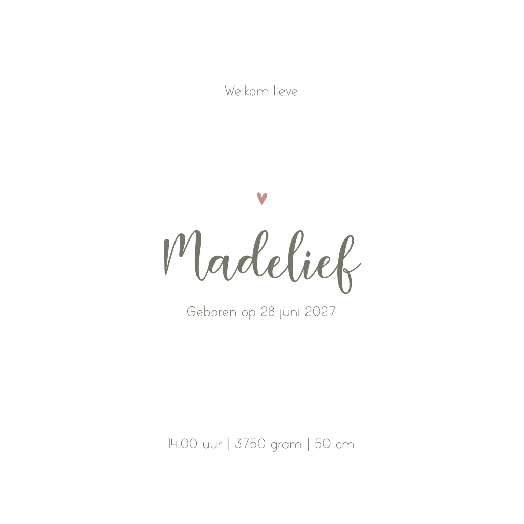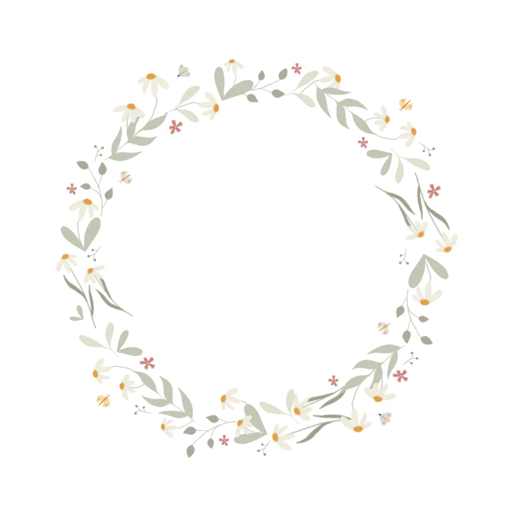 Een wit geboortekaartje met een bloemenkrans. Bij het geboortekaartje Madelief is er een ronde cirkel uit de voorzijde gestanst zodat je een doorkijk krijgt naar de binnenzijde van de kaart. Een schattig illustratie kaartje met bloemen en vlindertjes voor alle lente-/zomerkindjes!