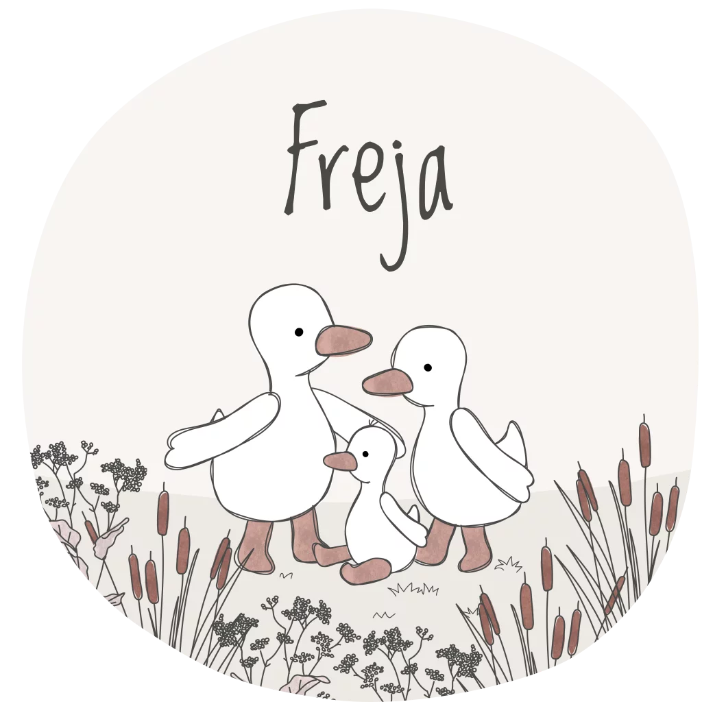 Een ontzettend schattig geboortekaartje in een bijzondere stans vorm. Op het kaartje staat een eenden gezinnetje met gansjes/ eendjes in het gras. Wil je toch iets aanpassen aan kaartje Freja? Ga dan zelf aan de slag in onze editor. Kom je er toch niet uit? Neem dan contact met ons op en we helpen je graag verder.