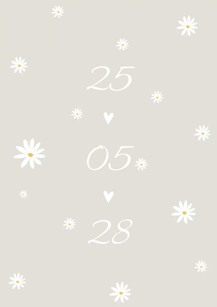 Een vrolijke save the date kaart, met madeliefjes, om jullie trouwdatum mee aan te kondigen. Bewerk de kaart naar eigen wens in de editor.