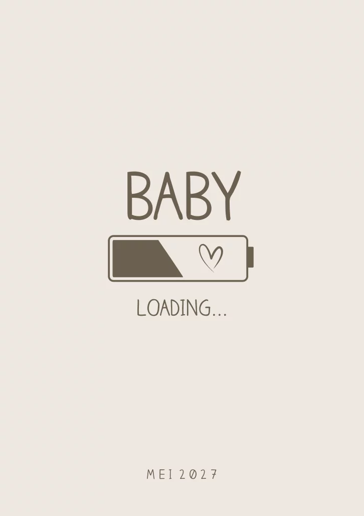 Maak je zwangerschap kenbaar met een leuke kaart, voor opa en oma, ooms en tantes, vrienden en vriendinnen. Een beige kaartje met een loadingbar en een hartje. Baby is loading!