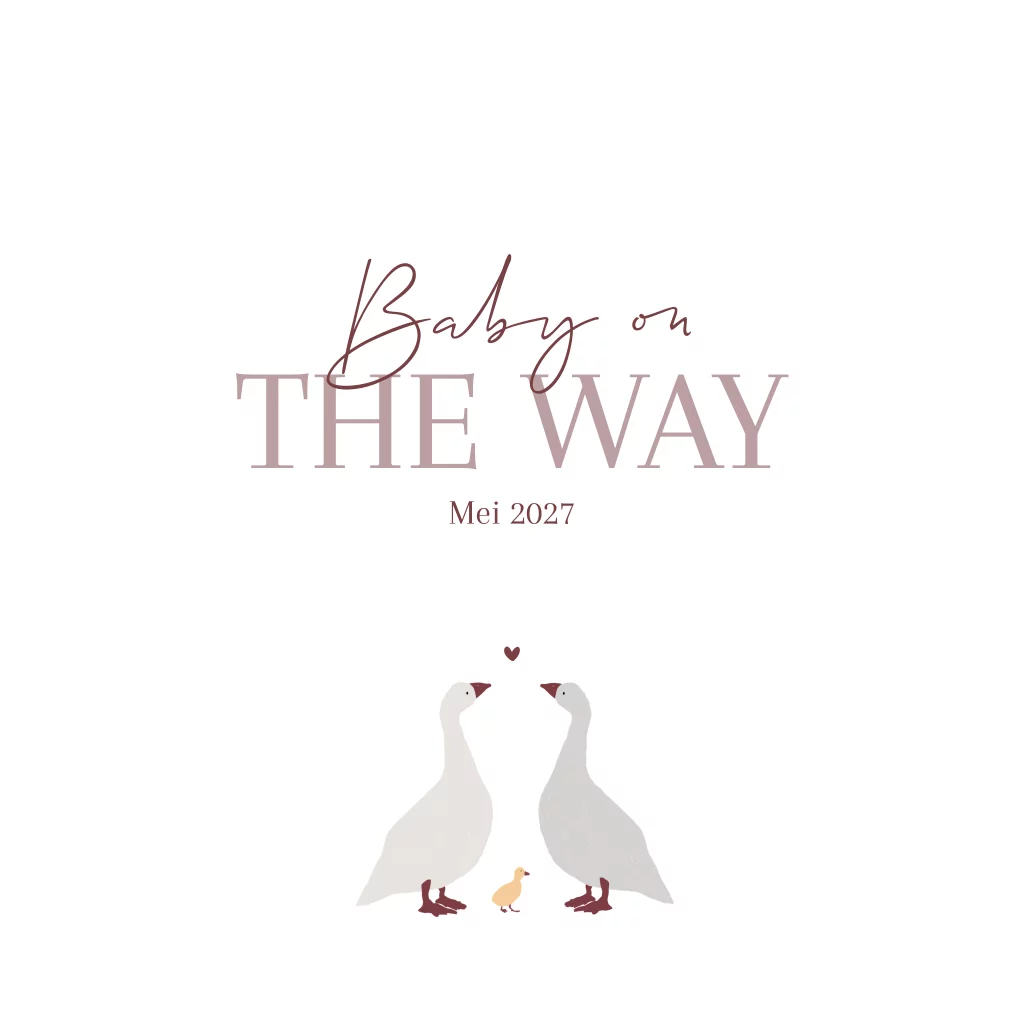 Een super leuk kaartje gansjes om je zwangerschap mee aan te kondigen. Je ziet mama gans, papa gans en baby gans. Geef het kaartje aan vrienden en familie.